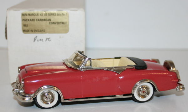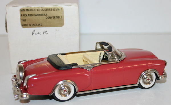 Minimarque 1/43 Scale US#1 - 1953 Packard Caribbean Convertible - Pink. 1/43 Scale Hand-Built White Metal Model By Minimarque.Us#11953 Packard CaribbeanPinkThe Model Is In Good Condition.One Wing Mirror Snapped Off (Missing).Faint Glue Marks On Both Doors (You Can Just See It In Picture 1)The Box Is In Good Condition - Worn.