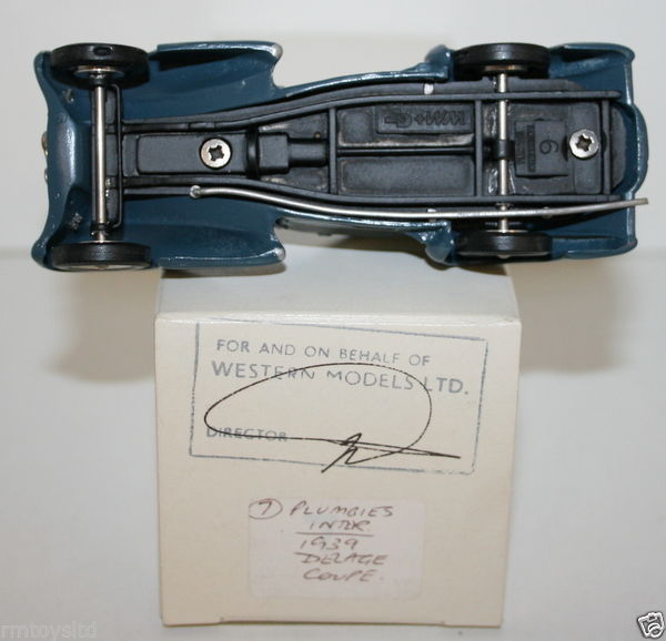 WESTERN MODELS MIKE STEPHENS 1st PROTOTYPE MODEL - PLUMBIES - 1939 DELAGE COUPE. 1/43 Scale Hand-Built White Metal Model By Mike Stephens Of Western Models.In 1973 Mike Formed Western Models With Two Friends. Besides Running This Company, Mike Made All The 4-View Scale Drawings For The Pattern Makers To Work From.Mike Stephens / Western Models Produced Prototypes For Various Model Manufacturers.This Model Was A Prototype For Plumbies Inter.1939 Delage CoupeBluePlease See Pictures For Best Description.The Model Is An EarlyPrototypeAnd As Such May Have Some Imperfections.The Item Pictured Is What We Will Be Sending.The Box Is In Near Mint Condition.V.Slightly Worn.