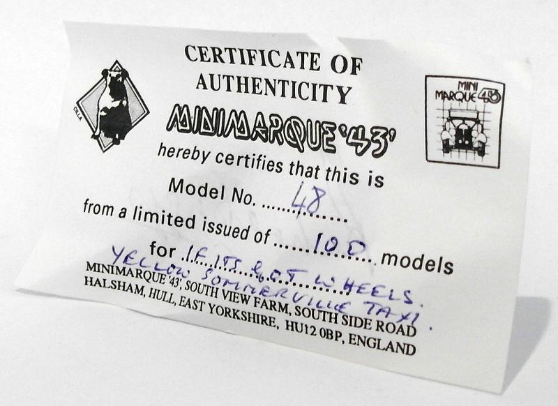 Somerville Models 1/43 Scale 100A - Austin FX4 Taxi Yellow 1 Of 100. The MODEL Is In EXCELLENT Condition - previously displayed.