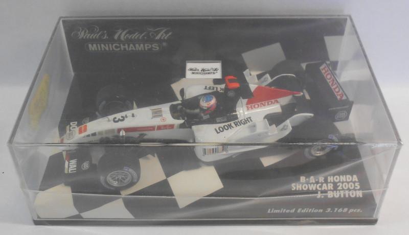 Minichamps F1 1/43 Scale - 400 050073 BAR HONDA J.BUTTON SHOW CAR. The MODEL is in MINT condition. The BOX is in NEAR MINT condition. - Slight wear. SEE PICTURES FOR BEST DESCRIPTION & GRADING CONDITIONS