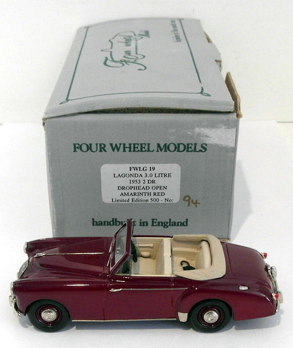 Four Wheel Models 1/43 Scale FWLG19 -1953 Lagonda 3Ltr 2Dr D/Head Open - Red. The MODEL is in NEAR MINT condition - previously displayed